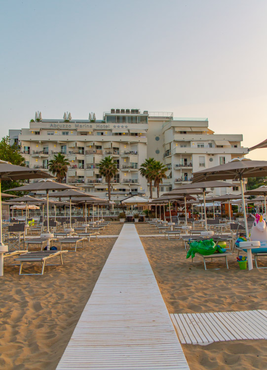 Exclusively available to our guests, the beach of the Abruzzo Marina Hotel has 110 umbrellas 2×2 meters, well spaced from each other, and is part of theTorre del Cerrano Marine Protected Area. Silvi Marina beach enjoys the Blue Flag continuously since 2008 and of Green Flag dal 2013, recognition, This, which includes it as an ideal beach for children.