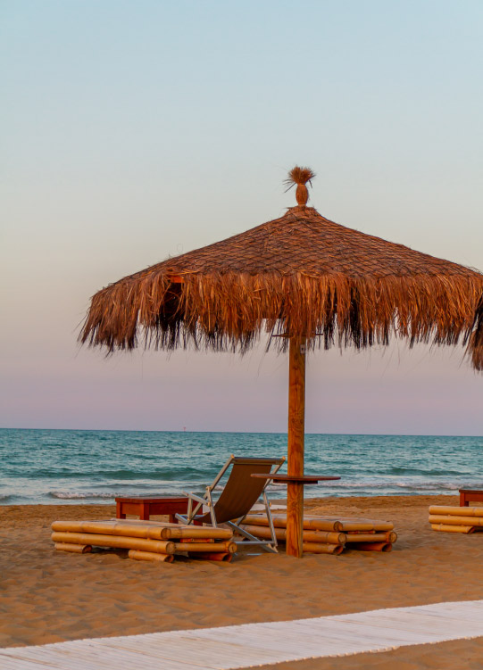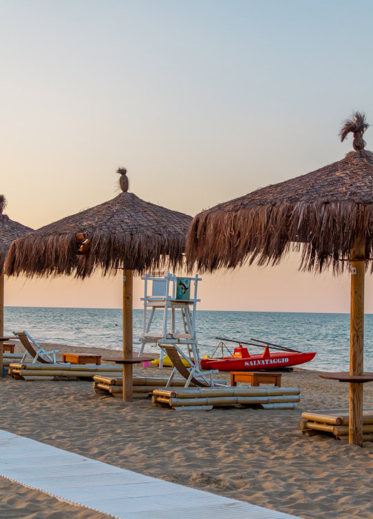 To enrich your stay, you can reserve one palma with bamboo sunbeds and waterproof mattresses: ideal for enjoying the sea in the very first row on the beach!