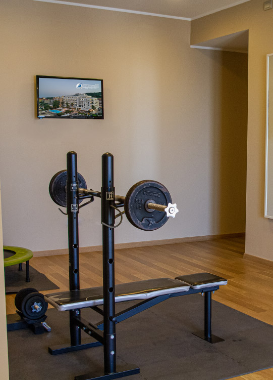 At your disposal a fitness room with a front view of the sea so you don't give up on shape during your holiday, equipped with exercise bikes, conveyor belt, gym tools, dumbbells and barbells.