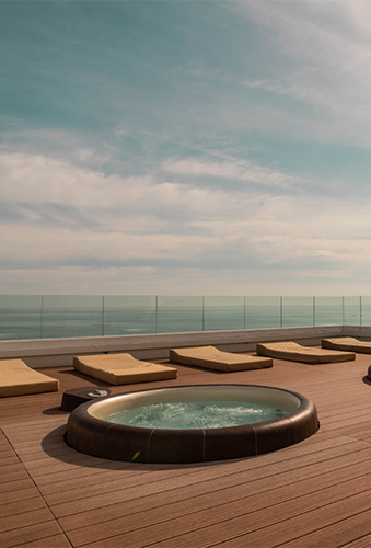 Go up to the 6th floor, where the suggestive atmosphere of the Panoramic Solarium Terrace awaits you; the splendid view of the Adriatic Sea combined with the pleasure of the hydromassage bubbles regenerate the body and mind on hot summer days.